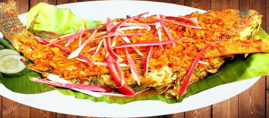 Ikan Pepes is a national fish dish in East Timor. Ikan means fish and Pepes refers to the method of steaming it in banana leaves, then grilling. Ikan Pepes is made with whole fish cooked in exotic Eastern spices.