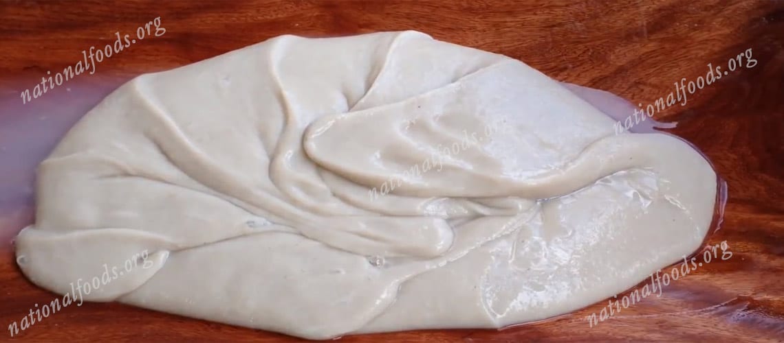 Poi is considered to be the national dish of the Solomon Islands. Taro is an important food crop grown on the islands and it is the main ingredient in Poi. It is a simple side dish that is made by pounding cooked taro roots into a paste. Poi has a delicate flavor and is pale purple in color. It can be eaten as soon as it is made or it can be allowed to naturally ferment for a few days. This is called Sour Poi.
